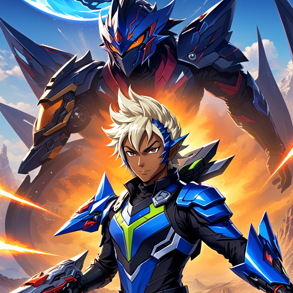 A anime mix race boy in hoodie blue background stars