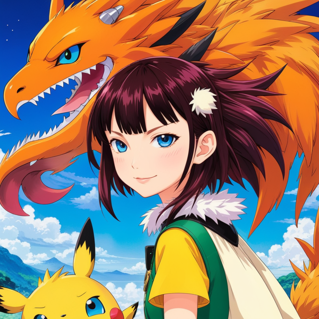 Kawaii chibi style of a girl with brown hair and brown eyes with a chocolate lab that is a service dog