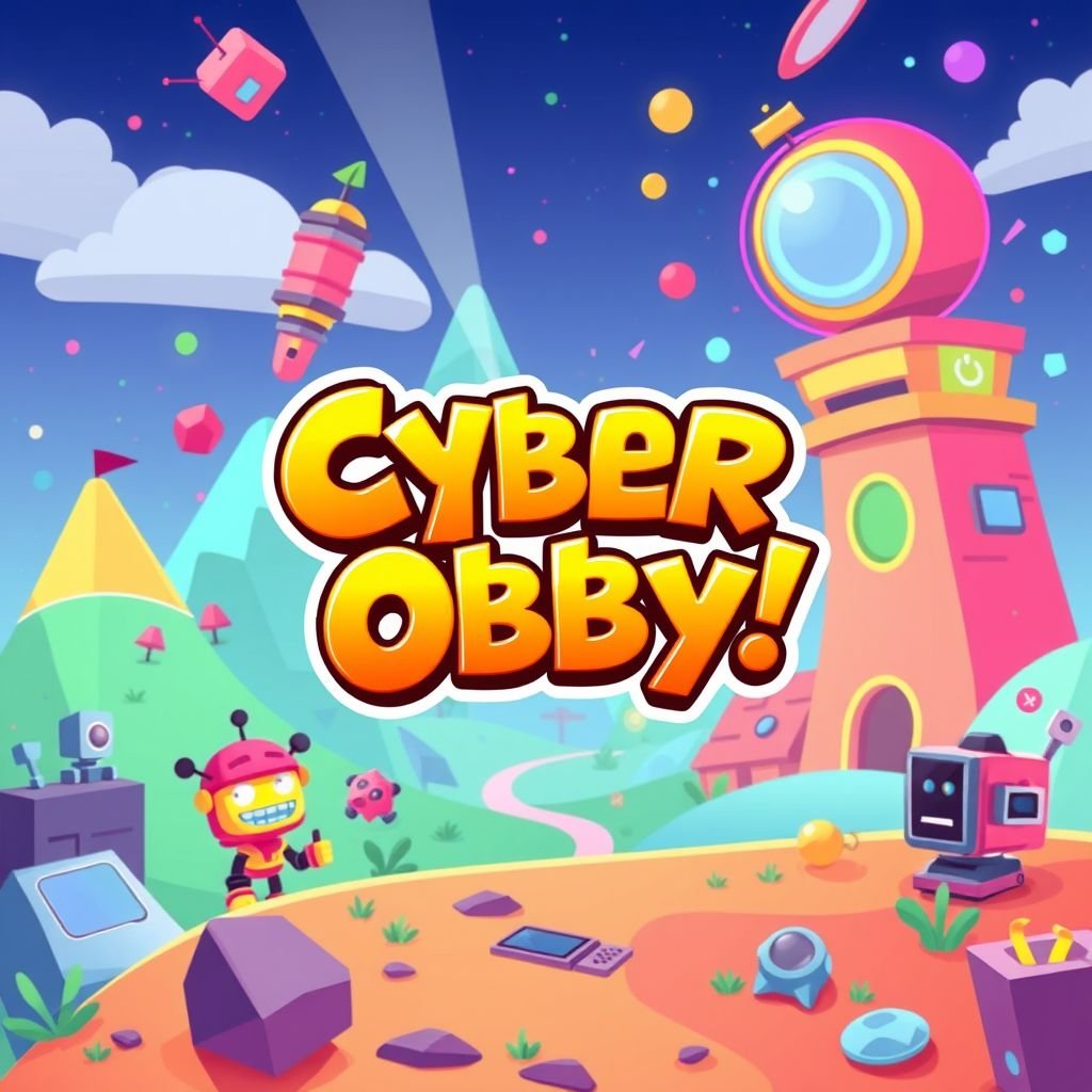 Make a cool background and with words in the middle saying “Cyber Obby!” With no person