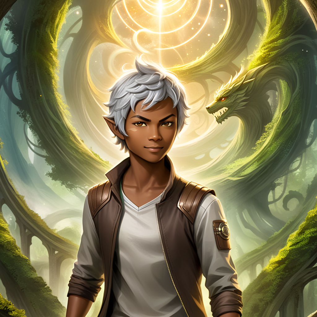a young man standing in front of a dragon