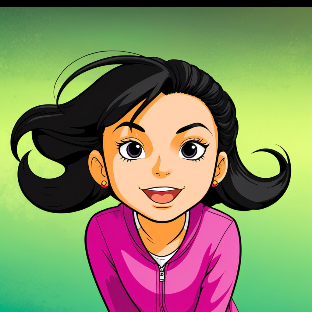 CuteKawaii chibi style of a teenager girl with dark brown hair and brown eyes with a chocolate lab that is a service dog