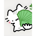 a picture of a cat with a green fan