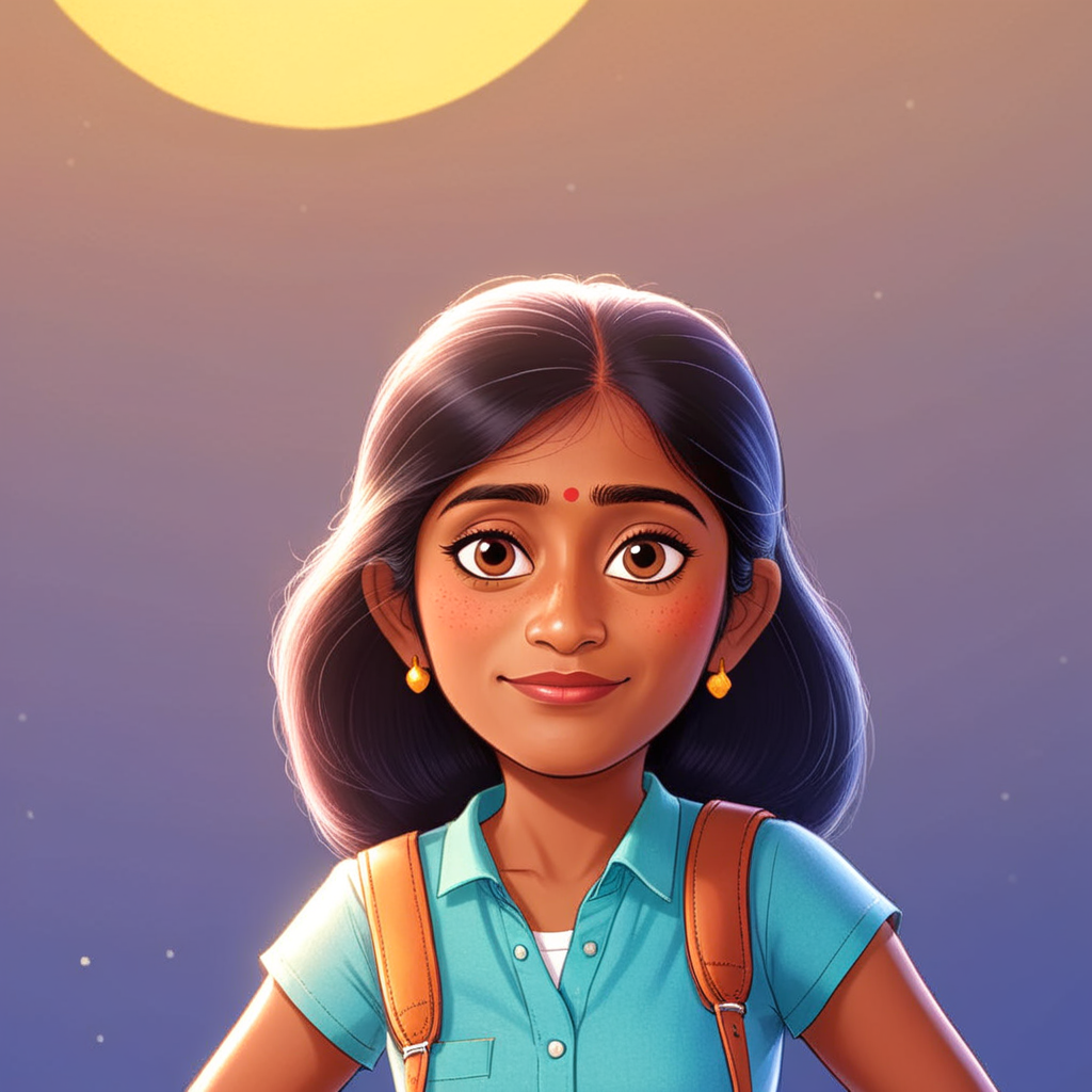 a cartoon girl with a backpack standing in front of a full moon