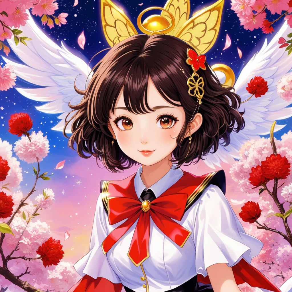 CuteKawaii chibi style of a teenager girl with dark brown hair and brown eyes with a chocolate lab that is a service dog