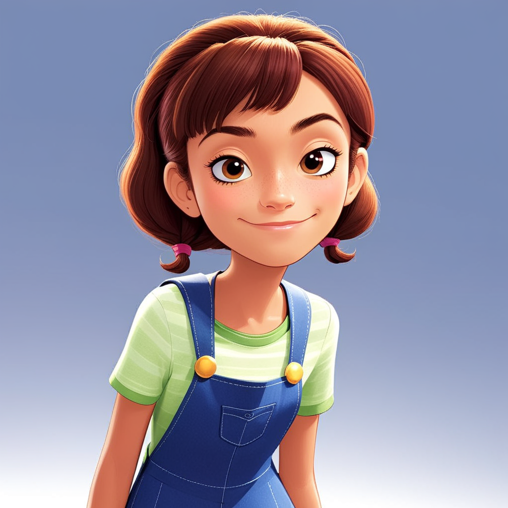 CuteKawaii chibi style of a teenager girl with dark brown hair and brown eyes with a chocolate lab that is a service dog