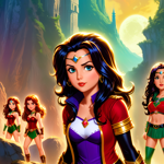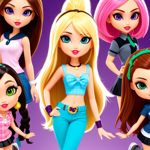 a group of cartoon girls standing next to each other