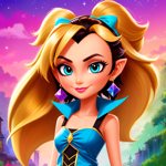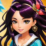 a cartoon girl with long hair wearing a blue dress