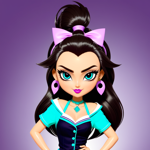 a cartoon of a girl in a purple dress