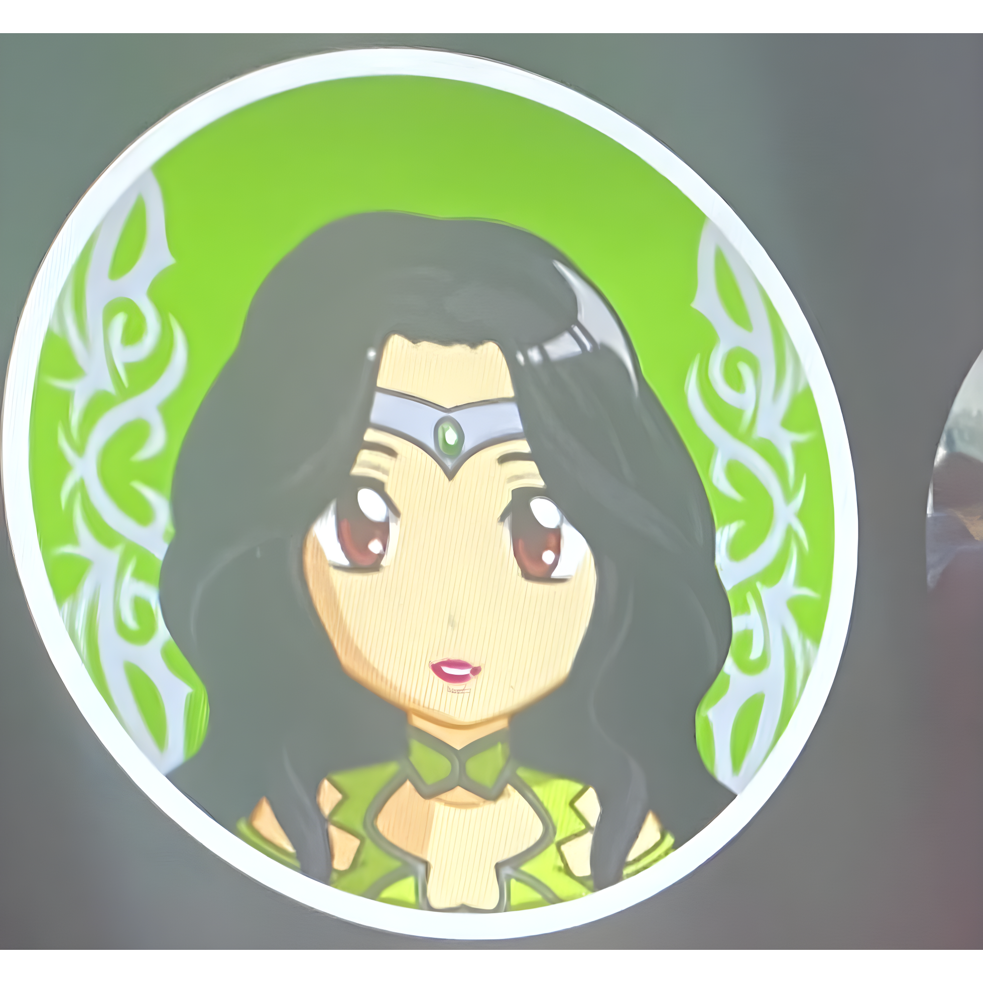 a cartoon girl in a green dress with a bow on her head