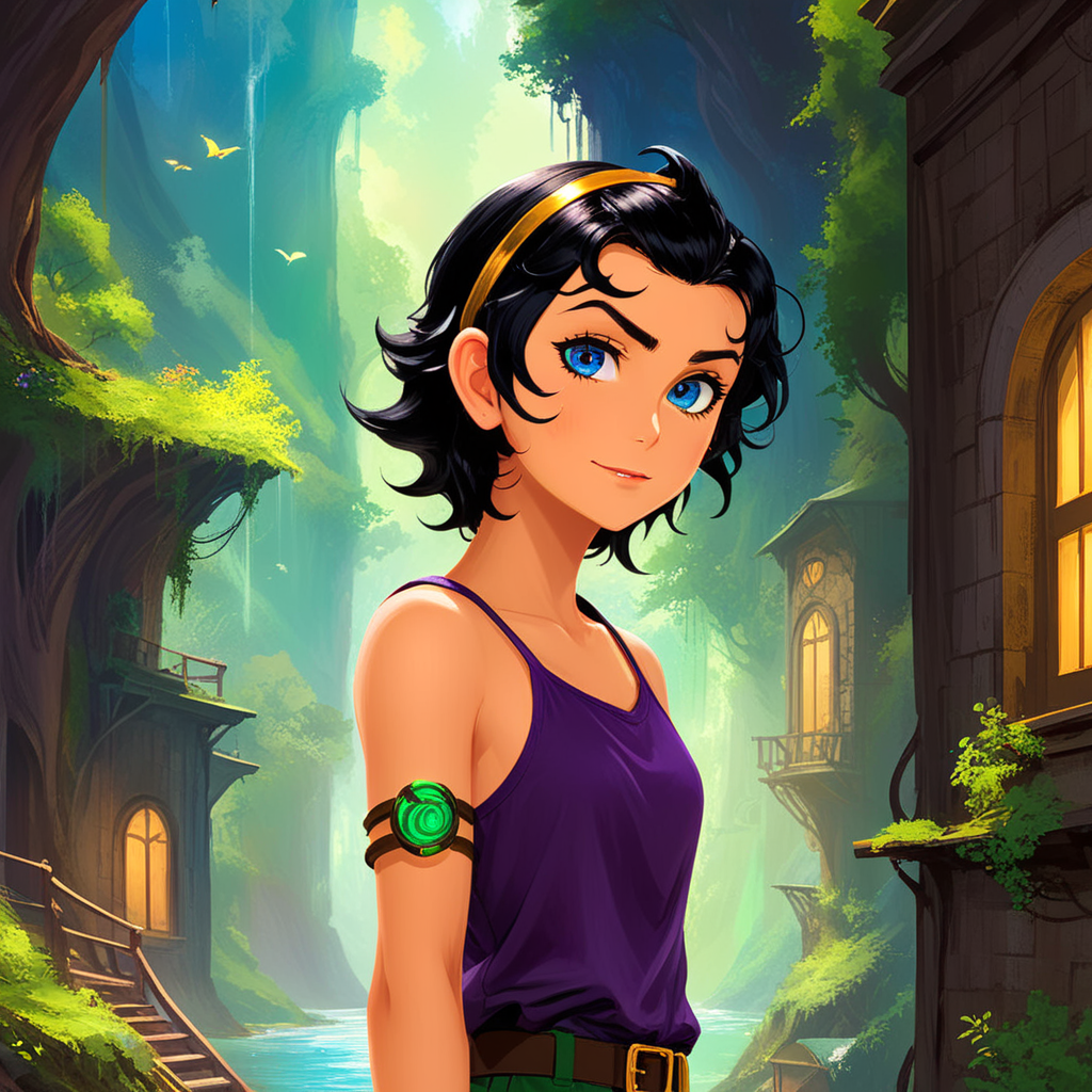 a cartoon girl in a blue dress with her hands on her hips