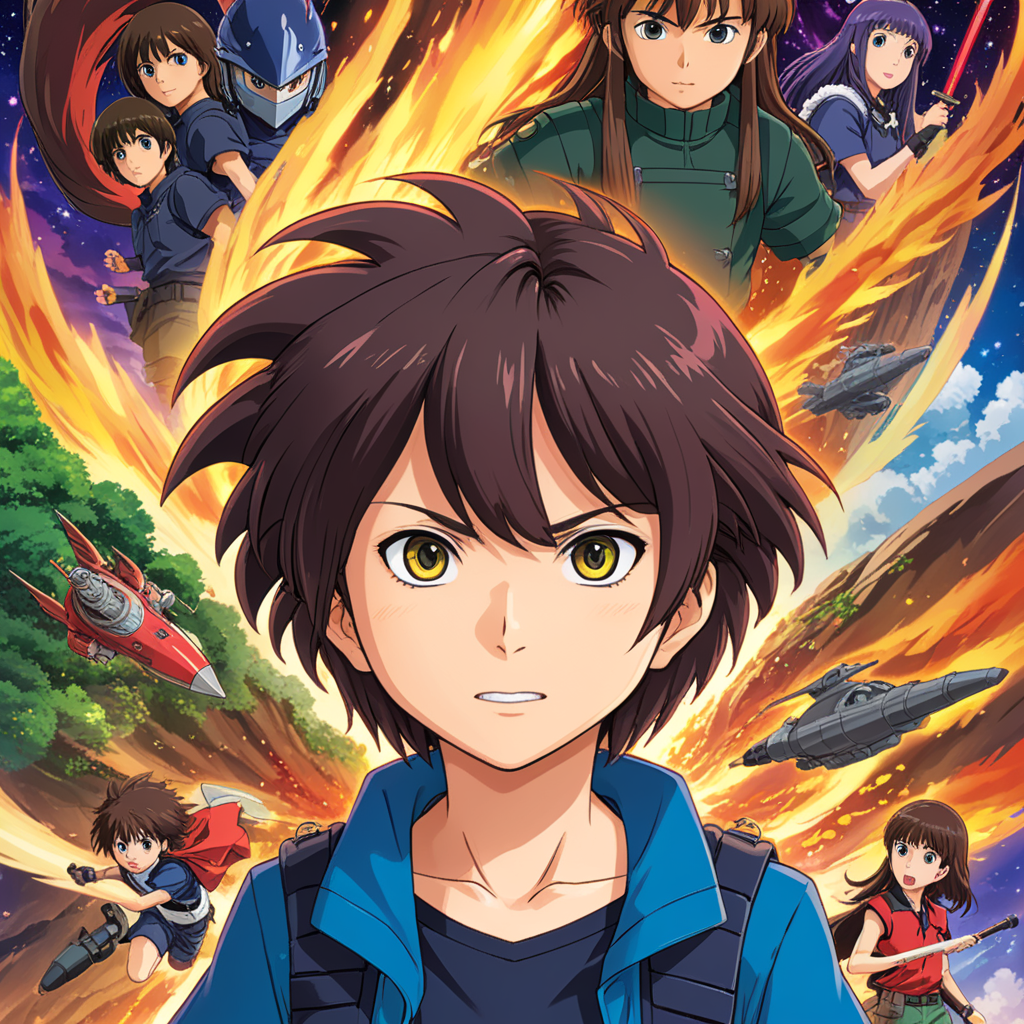 a group of anime characters with guns and a smiley face