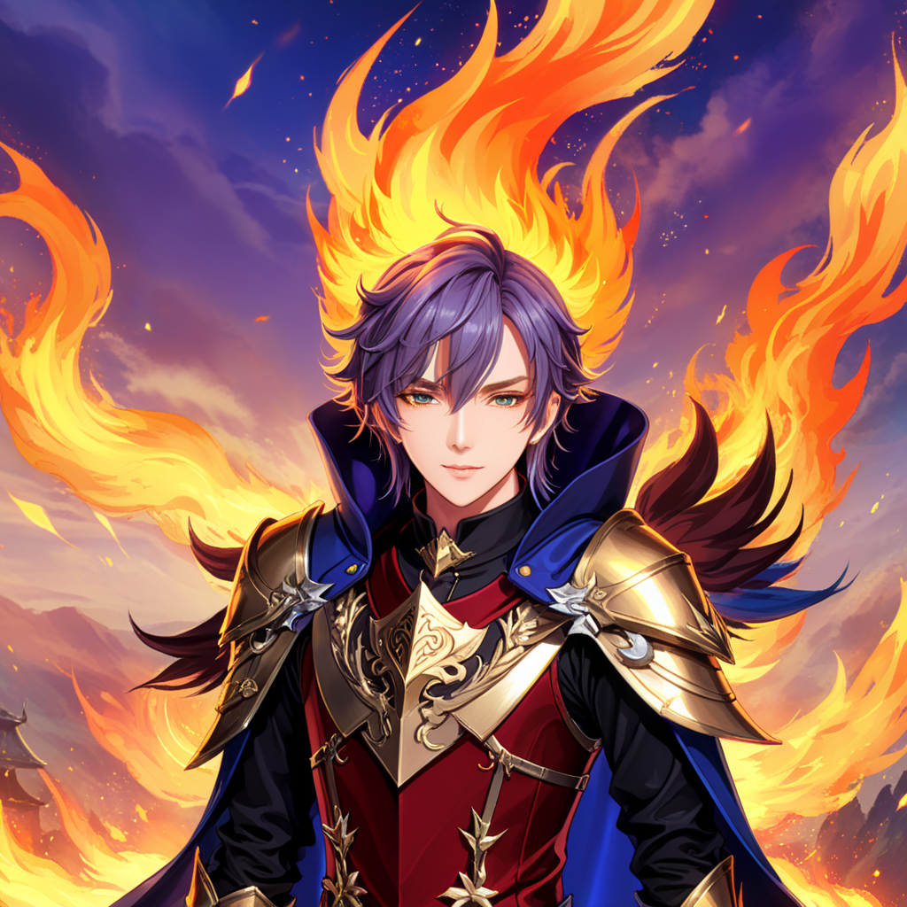 a man in armor standing in front of a fire