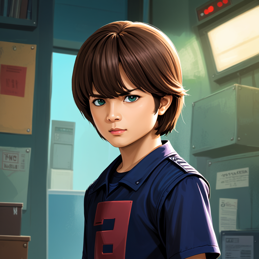 a woman in a blue shirt standing in a room