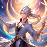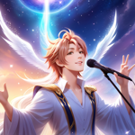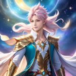 a group of anime characters in front of a galaxy background