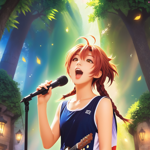 a girl singing into a microphone while holding a guitar