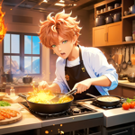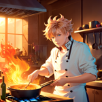 a person cooking food in a kitchen