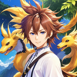 an anime character with two yellow animals on his shoulder