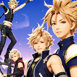 a group of anime characters standing in front of a night sky