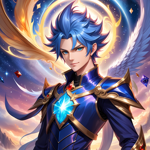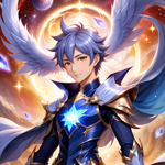 an anime character with blue hair and wings