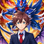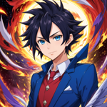 an anime character in a blue suit and red tie