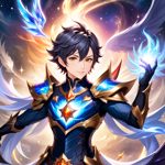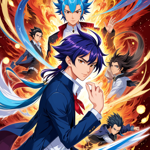 an anime character with blue hair and a cape