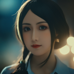 a close up of a person with long hair