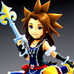 a girl with blonde hair holding a sword