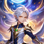 an anime character with white hair and blue eyes