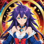 an anime character with purple hair and blue eyes