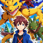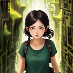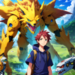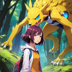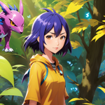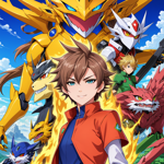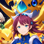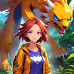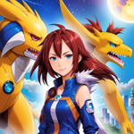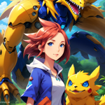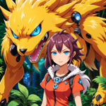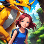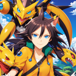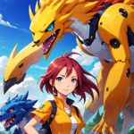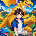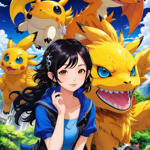 a girl in a yellow and blue shirt and a yellow and white dragon