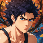 an anime character with blue eyes and black hair
