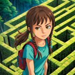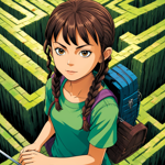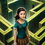 a young girl standing in front of a maze