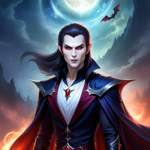 a man in a red shirt and black jacket standing in front of a full moon
