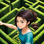 a girl is pointing at a maze