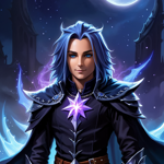 a man with blue hair wearing a black outfit