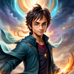 a painting of a harry potter holding a wand