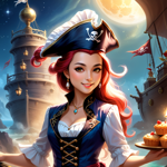 a woman in a pirate costume holding a tray of cupcakes