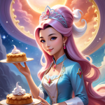 a beautiful young lady holding a cake on a plate