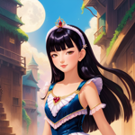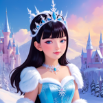 a girl wearing a tiara standing in front of a castle