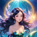a beautiful mermaid with long hair and a tiara