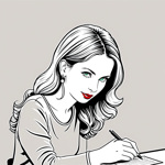 a woman sitting at a desk writing on a piece of paper