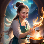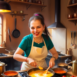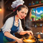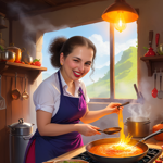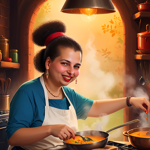 a cartoon of a woman cooking in a kitchen