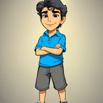a cartoon of a boy with his arms crossed