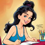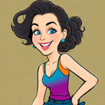 a cartoon of a woman in a blue dress