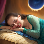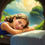a girl sleeping on a cloud with her eyes closed