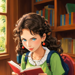 a girl reading a book in a library
