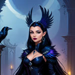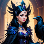 a painting of a woman with a black bird on her arm