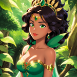 a cartoon of a woman in a green dress