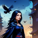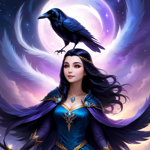 a painting of a woman with a raven on her head