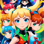 a group of anime girls standing next to each other